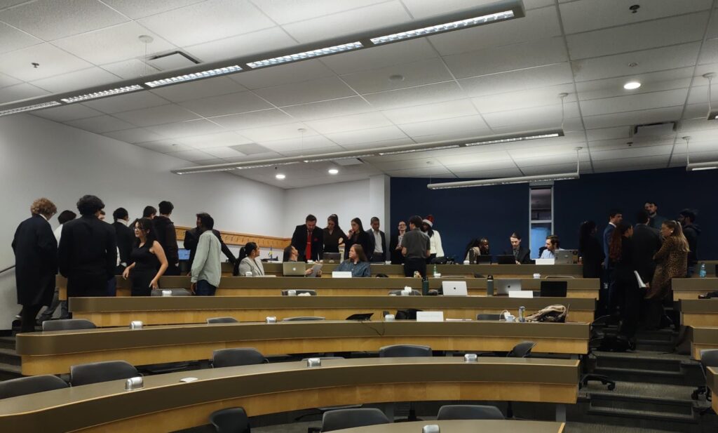 Picture of delegates conversing during the POLI 3610, mock NATO event. Taken during the Fall 2024 semester in Kamloops, Canada.
